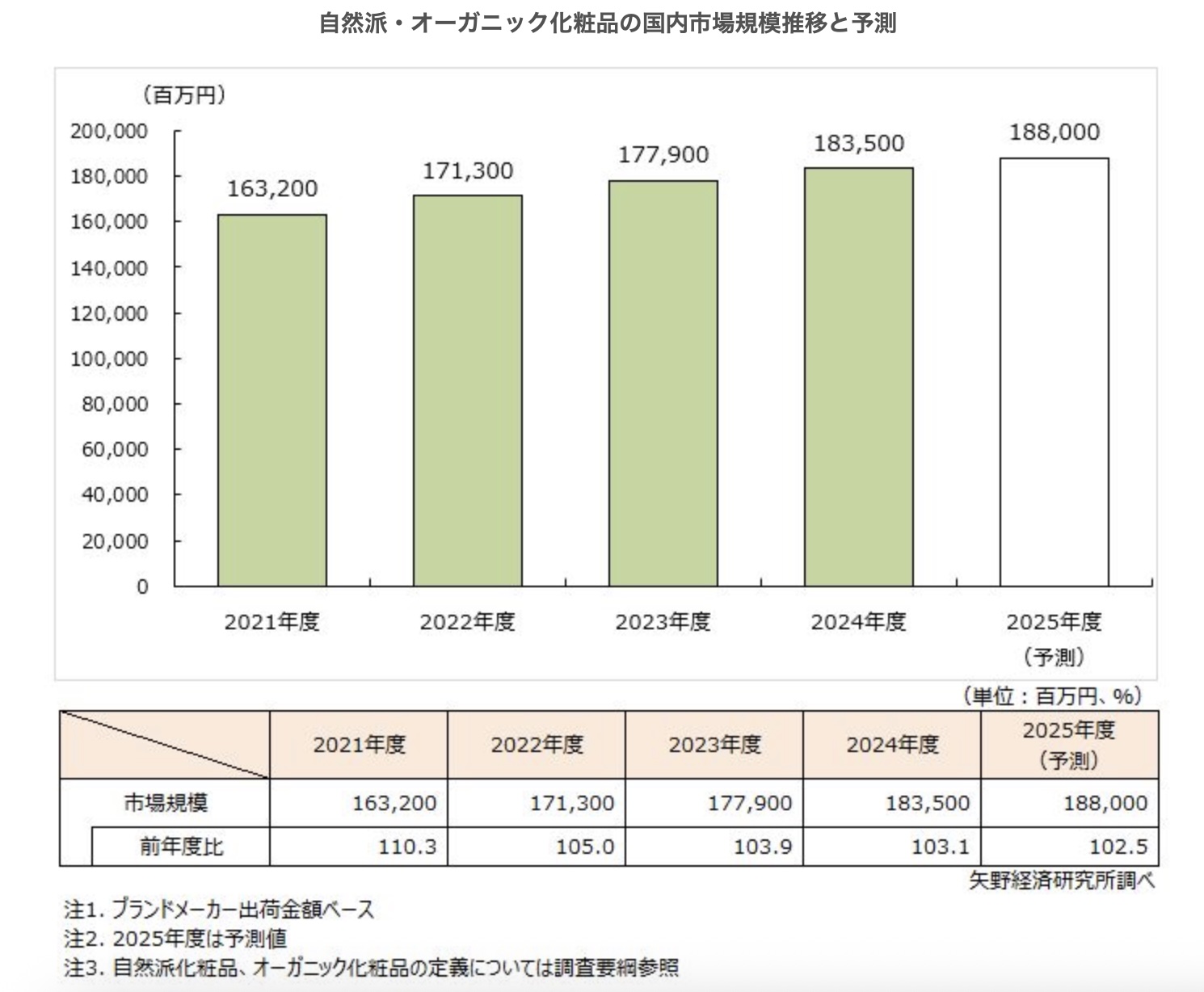 矢野経済研究所は、国内の自然派・オーガニック化粧品市場を調査し、製品カテゴリー別や流通経路別の動向、参入企業動向、将来展望を明らかにしました。